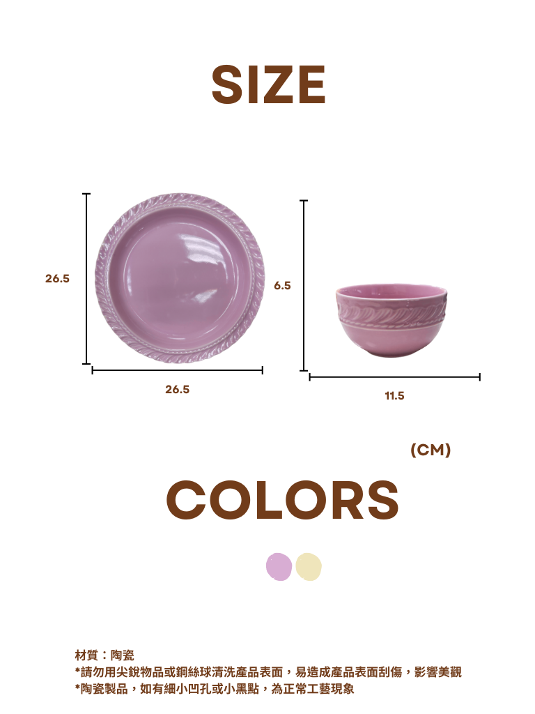 ● 每組包含兩個碗及一個盤子