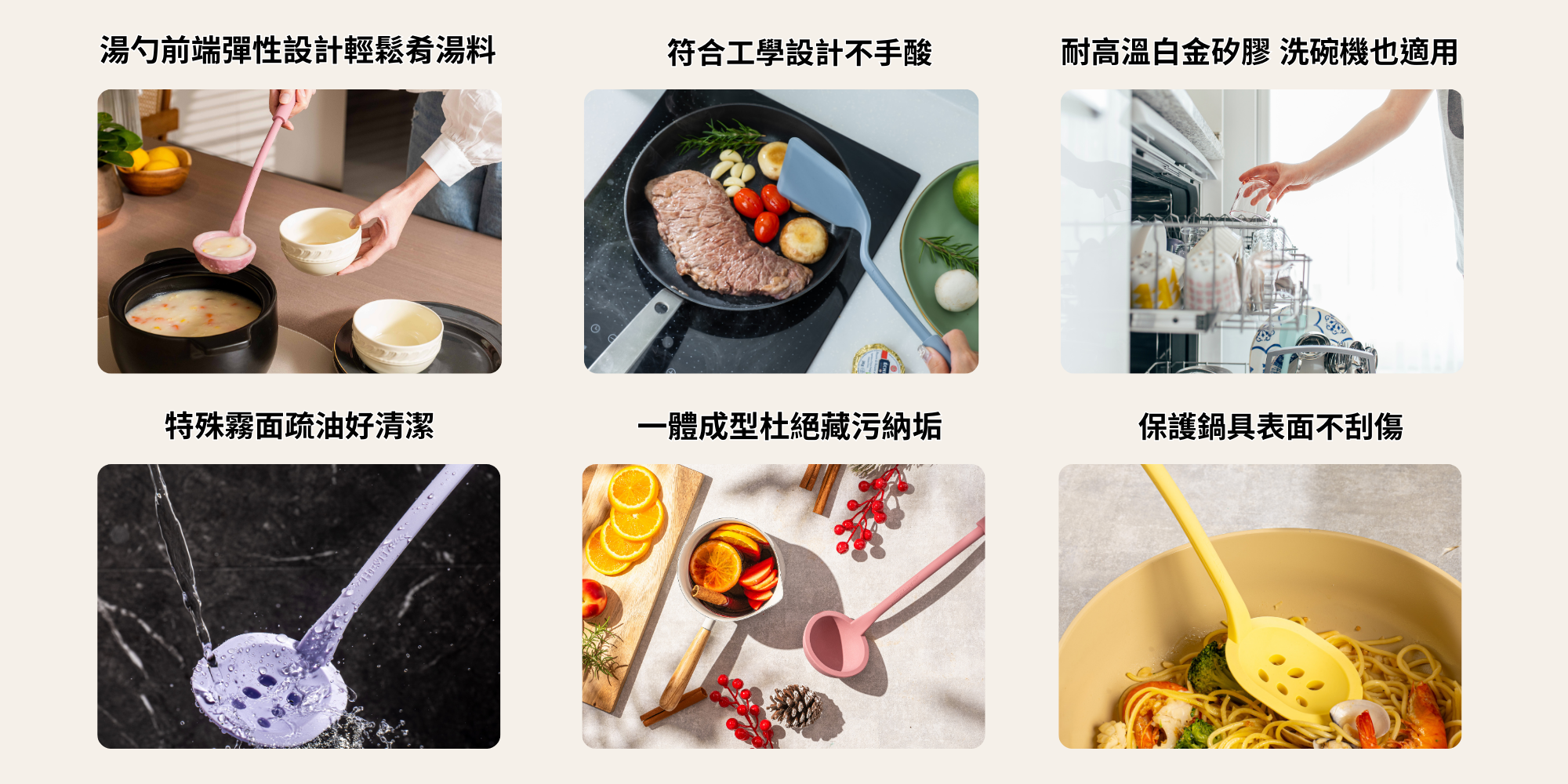 ✔️ 通過 SGS/FDA 食品安全認證食品級白金矽膠,不含 BPA 與塑化劑,呵護鍋具不刮傷